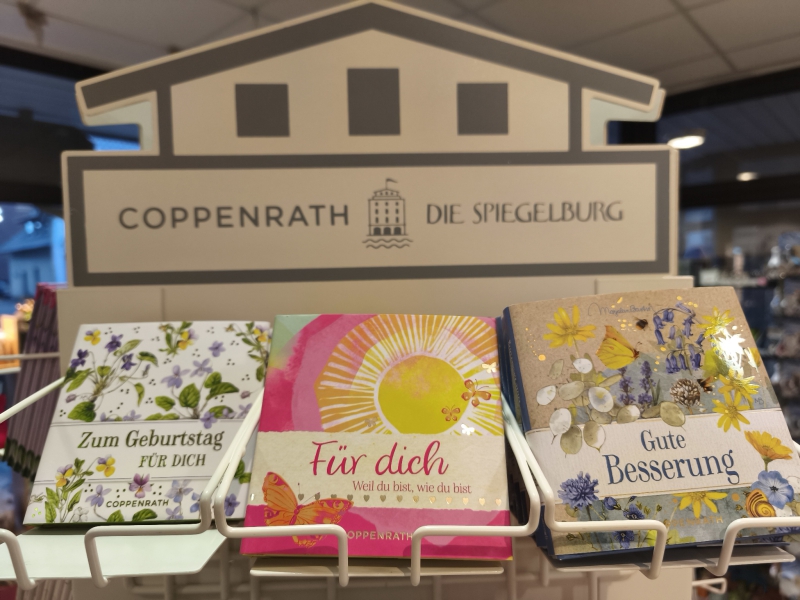 Eine schöne Auswahl Geschenkbücher findet ihr ind der Drehsaule vom Coppenrath-Verlag. Das Sortiment wechselt auch zur Saison.